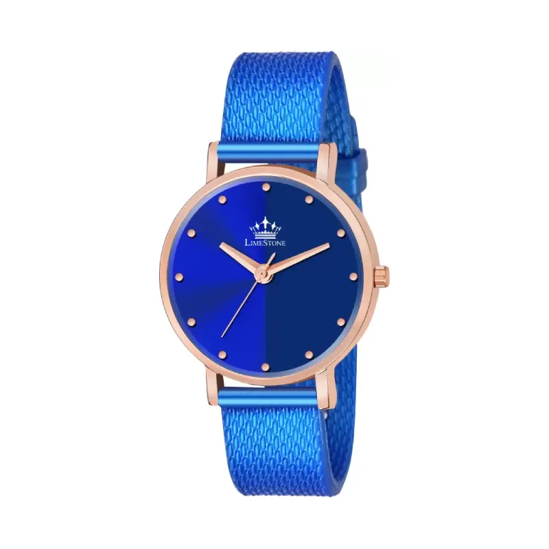 Indulge in luxury and sophistication. Make the Limestone LS1370 Blue Dial Mesh Design Silicon Strap Analog Watch for Women yours today.