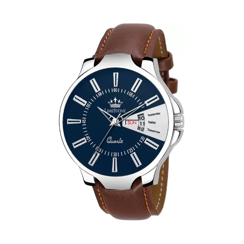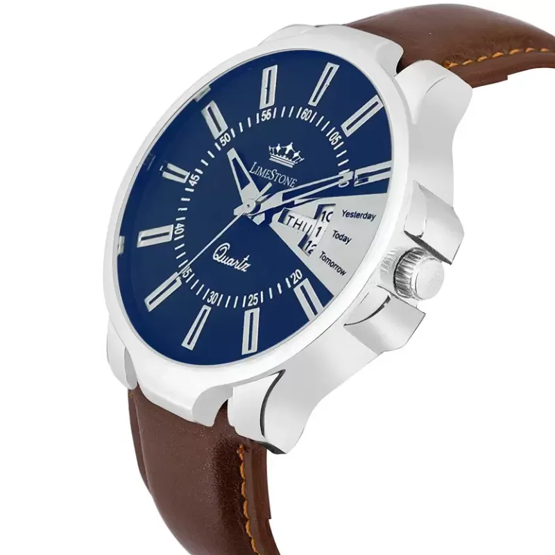 Limestone LS2845 Blue Dial Brown Tan Strap Analog Watch for Men