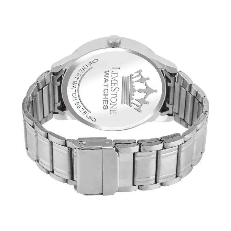 Introducing the Limestone LS2885 Black & White Dial Silver Chain Analog Watch for Men, a sophisticated timepiece designed to complement your punctual lifestyle with effortless style and reliability.