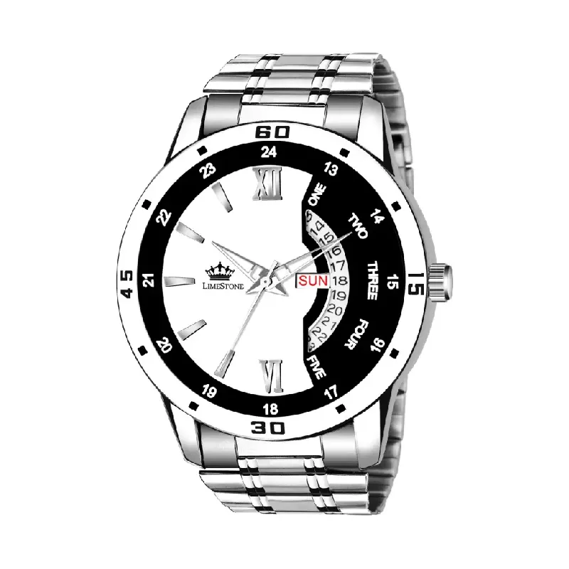 Introducing the Limestone LS2886 White & Black Dial Silver Chain Analog Watch for Men, a timeless accessory that seamlessly blends sophistication with functionality. Crafted for those who value punctuality and style, this exquisite timepiece from Limestone is more than just a watch—it’s a statement.