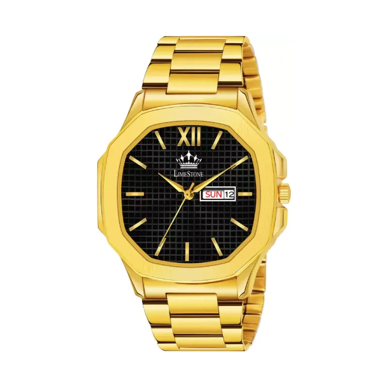 Crafted with precision, this analog watch from Limestone boasts a striking black dial encased in durable stainless steel. The sleek golden chain strap, crafted from high-quality stainless steel and elegantly plated in gold, adds a touch of luxury to your ensemble, making it perfect for any occasion, whether it’s a casual outing, formal event, or a lively party-wedding celebration.