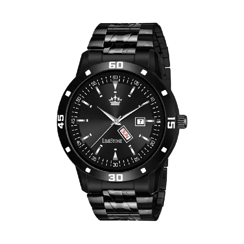 Introducing the Limestone LS3050 Black Dial Black Chain Analog Watch, a masterpiece of sophistication and style that transcends time itself. Elevate your wristwear game with this exquisite timepiece, meticulously crafted to make a bold statement wherever you go.