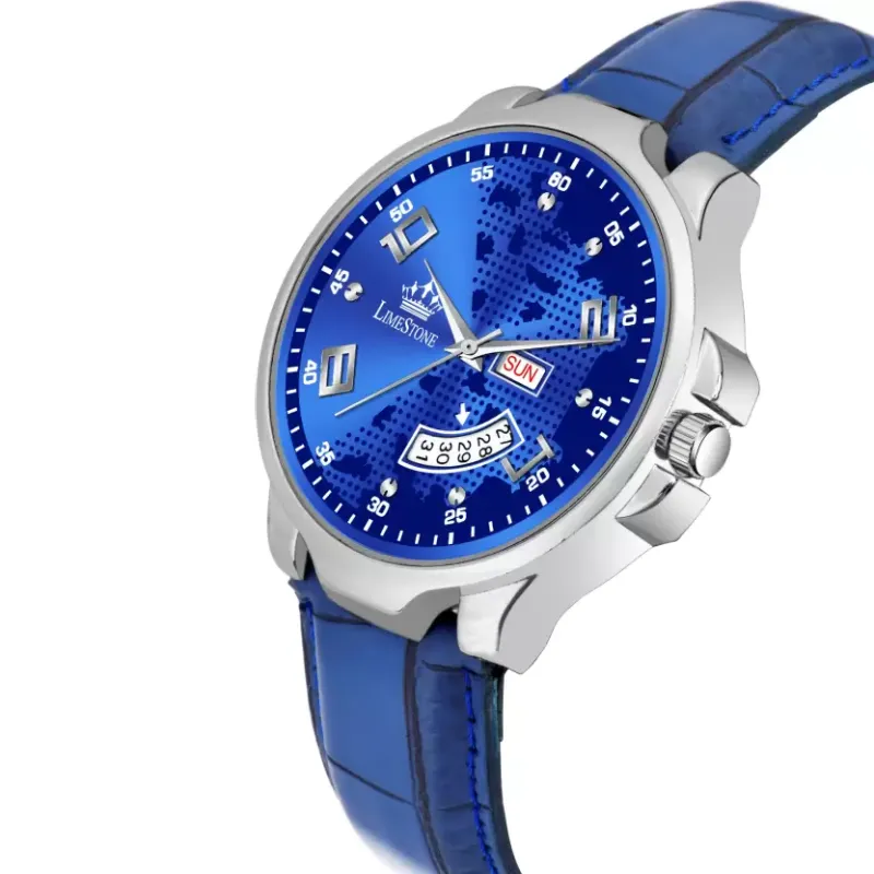 Introducing the Limestone LS3084 Blue Dial Blue Leather Strap Analog Watch for Men, where style meets precision. Elevate your wrist game with this masterpiece that seamlessly blends elegance and functionality. Crafted to cater to every occasion, whether it’s a casual outing, a formal affair, a lively party, or even a sporty escapade, this timepiece is your perfect companion.
