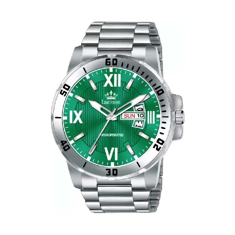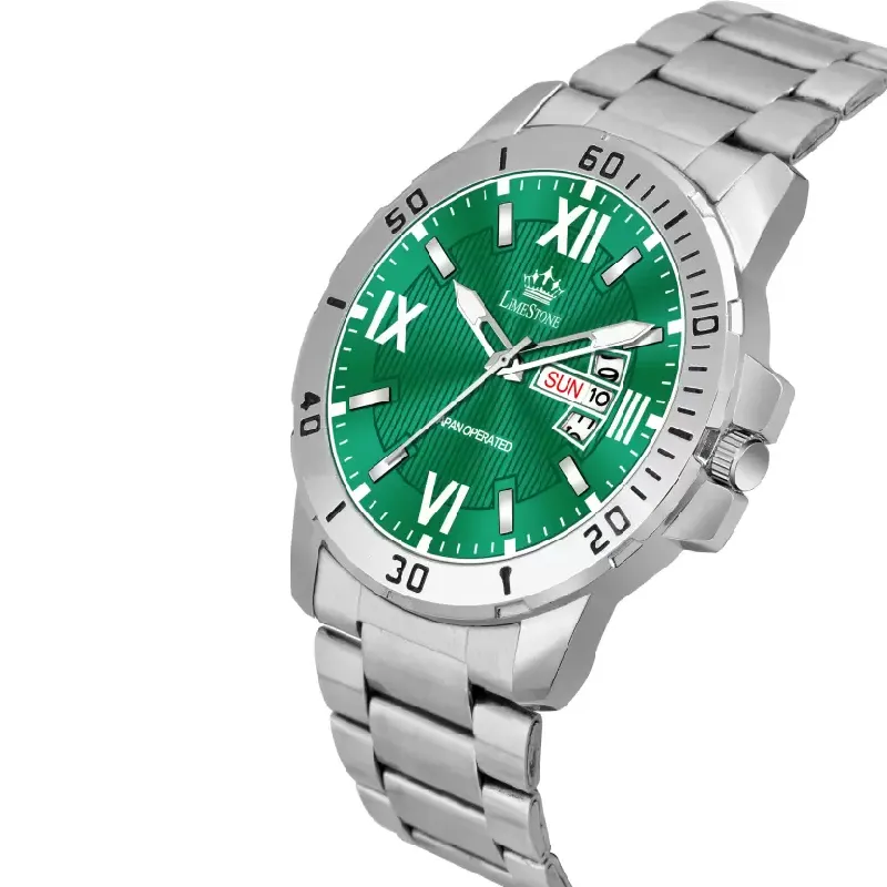 Introducing the Limestone LS3201 Green Dial Silver Chain Analog Watch for Men – a quintessential accessory that blends functionality with refined aesthetics. Designed to elevate your style quotient in every setting, from casual outings to formal events, and even at sporty gatherings, this watch is not just a timepiece; it’s a statement of class and precision.
