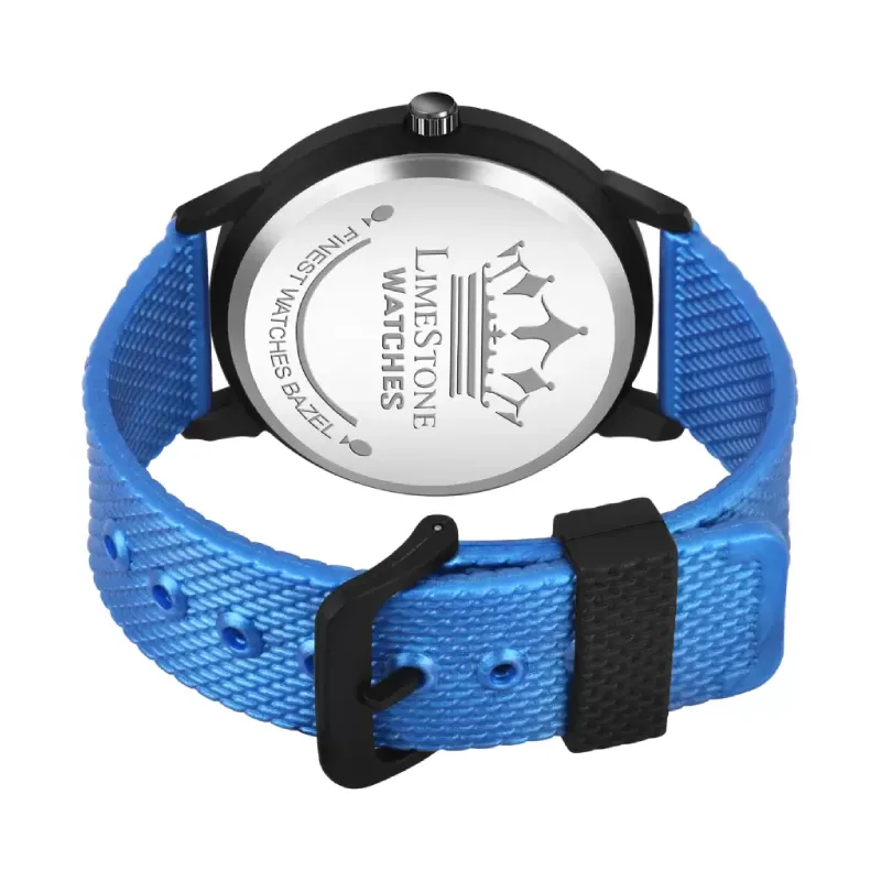 Elevate your style quotient with the Limestone LS3252 Blue Dial Blue Silicon Mesh Strap Slim & Minimalist Watch for Men. Embrace timeless elegance with every tick.