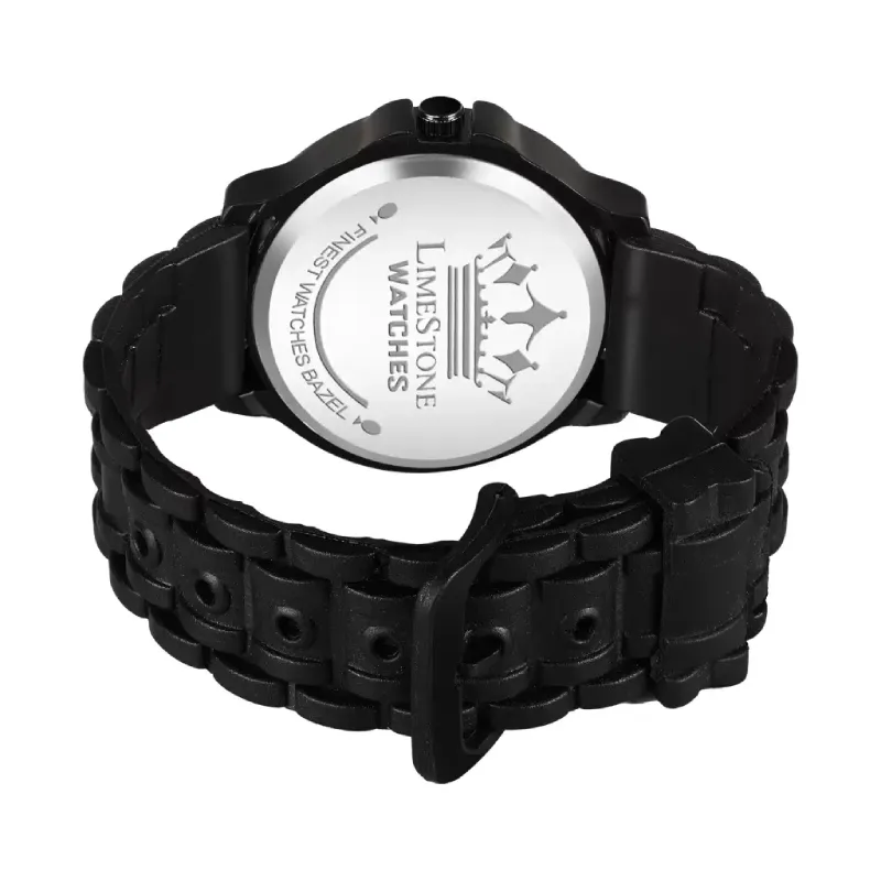 Elevate your ensemble and make a statement with the Limestone LS3261 Black Dial Black Silicon Strap Analog Watch for Men – where style meets substance.