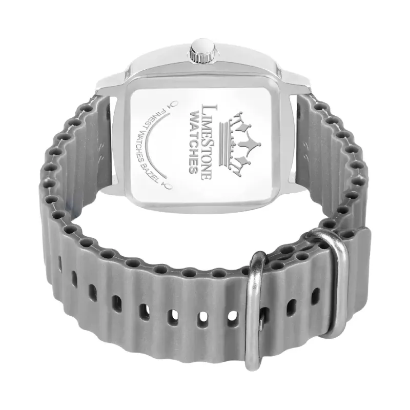 Crafted with precision, this watch boasts a sleek black dial encased in a square alloy bezel, exuding elegance and durability. The grey silicone strap, reminiscent of smartwatch aesthetics, offers both style and comfort, ensuring a snug fit for every occasion.