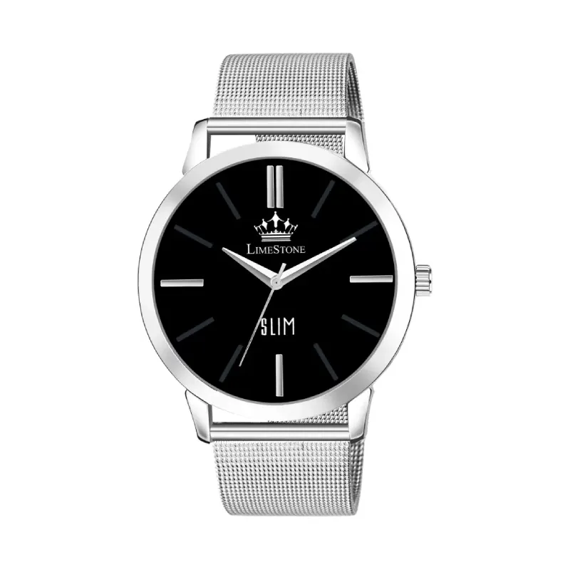 Introducing the Limestone LS3272 Black Dial Silver Chain Analog Watch for Men – a timeless masterpiece crafted to complement every facet of your life.