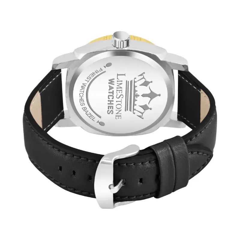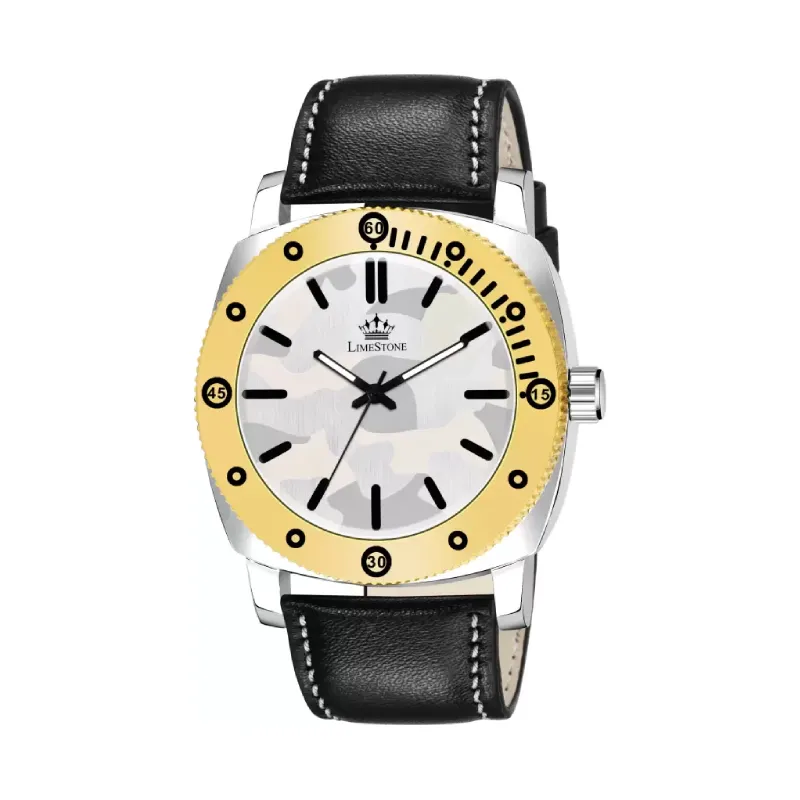 Introducing the Limestone LUXE103 Camouflage Dial Black Leather Strap Analog Watch for Men, where sophistication meets rugged charm. Crafted to elevate your style quotient, this timepiece seamlessly transitions from casual outings to formal affairs with unparalleled grace.