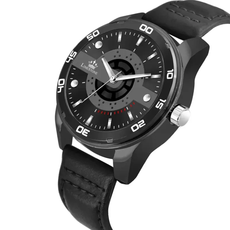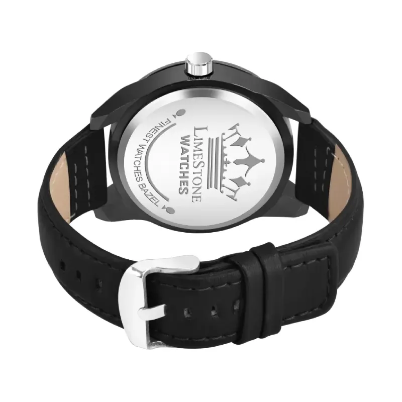 Introducing the epitome of timeless sophistication, the Limestone LUXE118 Black Dial Black Leather Strap Analog Watch for Men. Crafted with meticulous attention to detail, this exquisite timepiece seamlessly blends style with functionality, making it a versatile accessory for any occasion.