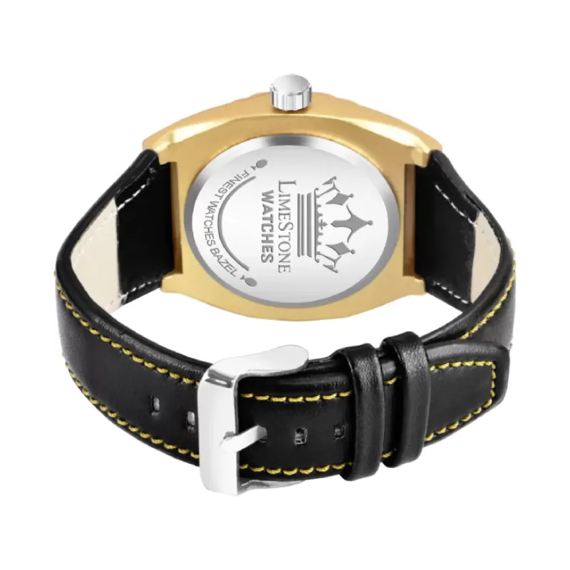 Introducing the epitome of sophistication and style, the Limestone LUXE123 3D Cut Dial Black Leather Strap Analog Watch for Men. Elevate your wrist game with this exquisite timepiece, meticulously crafted to perfection by Limestone.