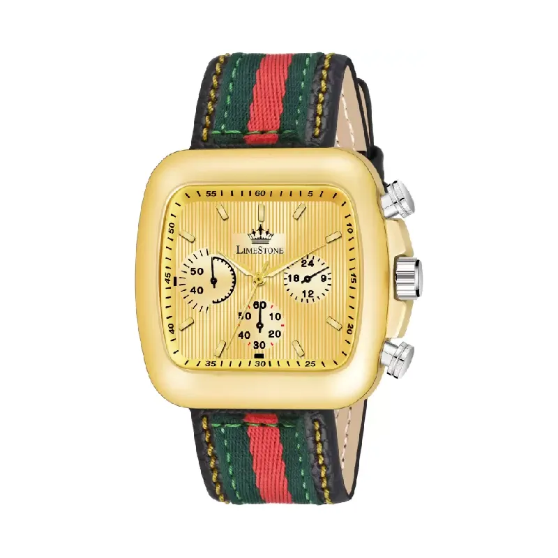 Introducing the epitome of timeless elegance and modern sophistication – the Limestone LUXE132 Gold Dial Designer Strap Analog Watch for Men. Elevate your style game with this masterpiece crafted to perfection by Limestone, blending classic aesthetics with contemporary flair.