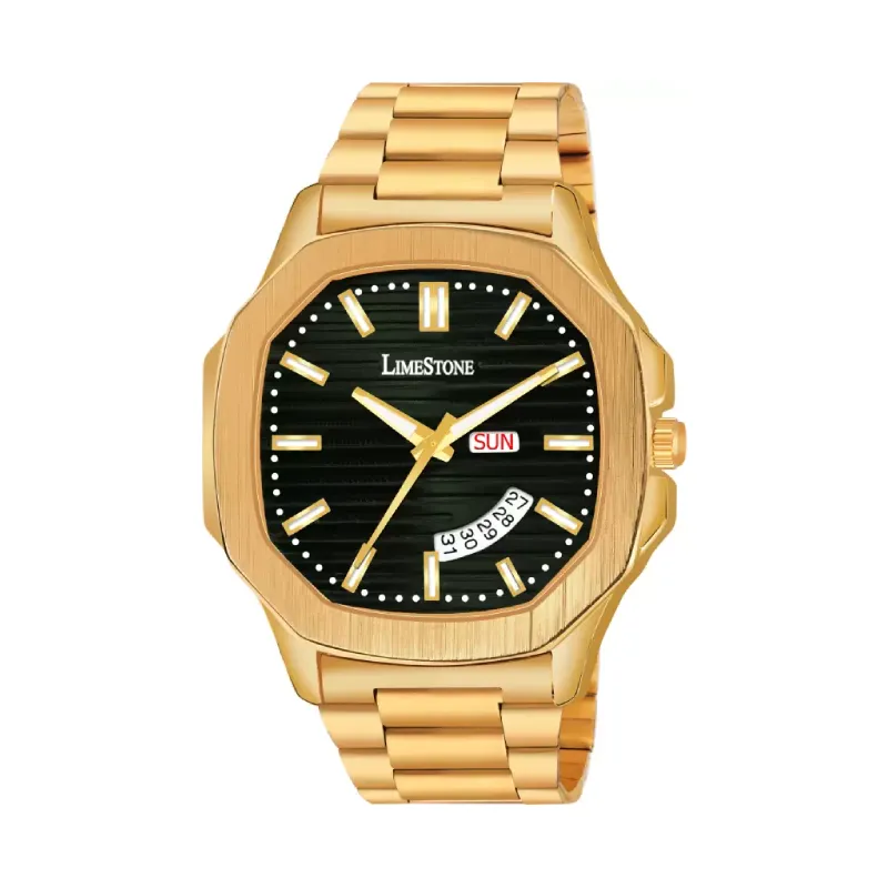 Embrace timeless charm with the allure of the Limestone OTUS006. Its striking dark green dial, adorned with subtle stripes, draws attention effortlessly, while the golden chain bracelet exudes luxury and class. Whether it’s a casual outing, a formal event, or a spirited celebration, this versatile watch complements every occasion with finesse.