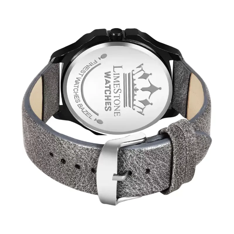 Backed by a 6-month off-site warranty, you can trust in the quality and craftsmanship of the Limestone OTUS023 OTUS 3D Silver Dial Grey Leather Strap Analog Watch for Men. Elevate your style quotient and make a statement with this exquisite timepiece that exudes sophistication and charm.