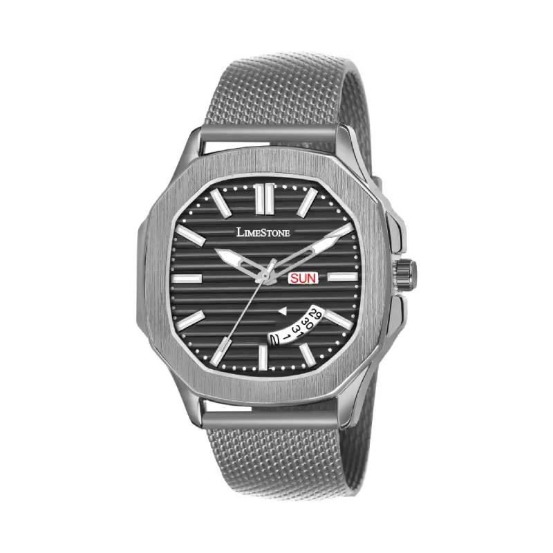 Embark on a journey of timekeeping sophistication with the Limestone OTUS024. Crafted with meticulous attention to detail, this watch boasts a sleek black dial adorned with a captivating textured design, exuding an aura of refined elegance and contemporary charm.