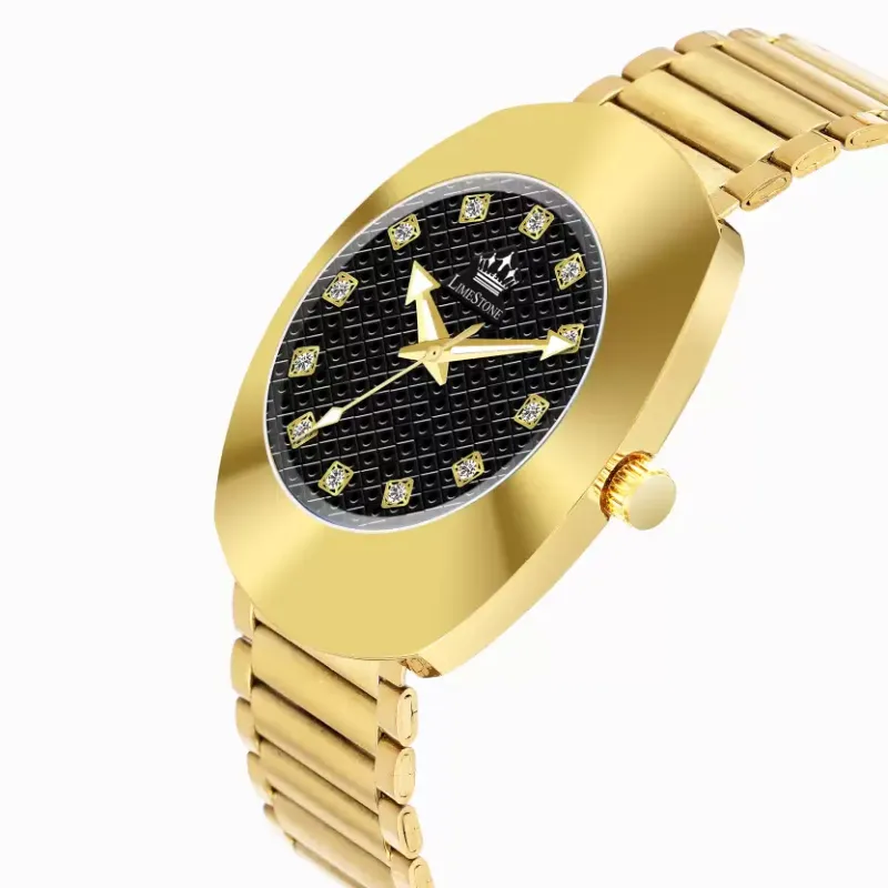 Introducing the LIMESTONE RADD014 Original Gold Plated IZIPIZI 3D Dial Studded Analog Watch for Men, a true epitome of timeless elegance and modern sophistication. Crafted to perfection, this exquisite timepiece seamlessly blends classic charm with contemporary allure, making it a must-have accessory for the discerning gentleman.